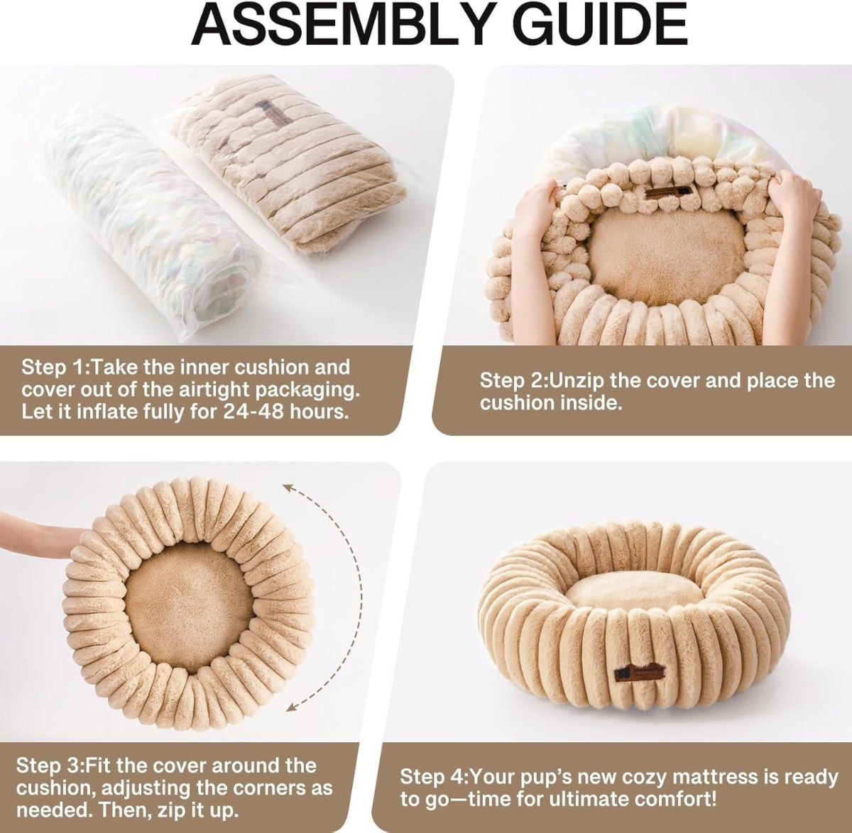 Shed-Free Fabric: Crafted from OEKO-TEX standard 100 certified, ultra-soft, shed-free material, this Donut dog bed offers a cozy resting spot without adding pressure on your pet's joints. It soothes joint and muscle pain, all while keeping your home clean and tidy by reducing fur build up
